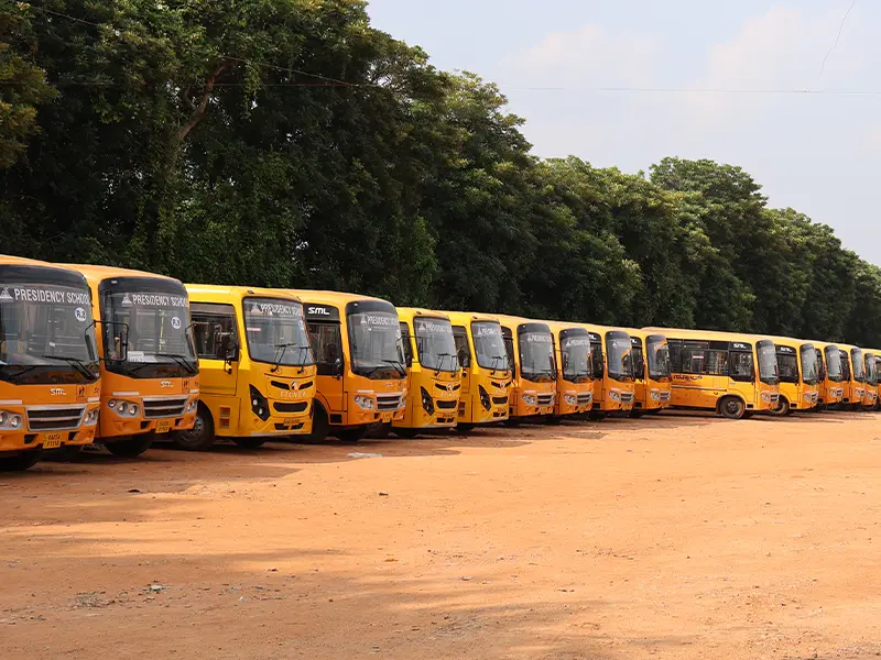 Our safe and reliable transport network covers major routes across Bangalore. GPS-enabled buses and trained staff ensure students travel with comfort and security every day.